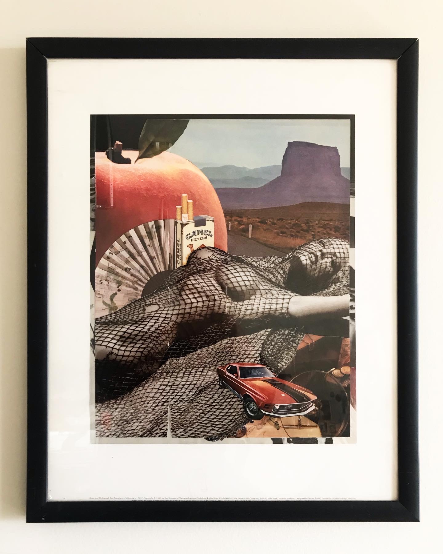 I enjoy working with the ‘men’s entertainment’ magazines because it allows me the opportunity to re-contextualize the models in environments that inspire freedom. I enjoy literally excising them from the context of the magazine, placing them in new color schemes, landscapes, and company that awakens the strength of each model in her photograph. Themes I explore are sexual expression and repression, queerness, Americana, consumerism, and vices.